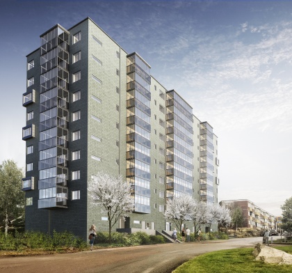 Huset har två trapphus med respektive fem och sex lägenheter per våningsplan. Här kommer det att erbjudas lägenheter från ett till tre rum och kök, med tyngdpunkt på tvårummare.Samtliga lägenheter får inglasad balkong med vidsträckt utsikt.
